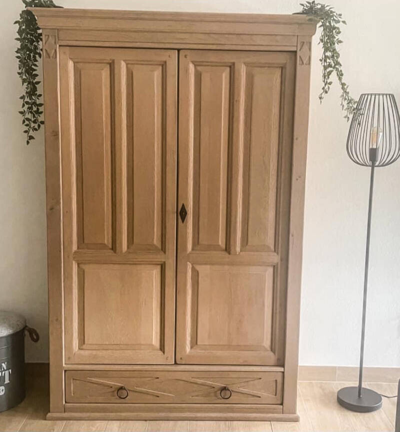 Het schuren is een techniek wat enorm veel tijd en werk vergt. Daar we hier tot op het blanke hout moeten schuren en veel met de hand moeten bewerken. Wanneer alles mooi zuiver is en blank genoeg, slissen we het meubel na om een glad oppervlak te bekomen. Om een mooi resultaat te bekomen en uw hout natuurlijk te houden, zetten we eerst een patine om het gele, orange of rode, naar gelang het houtsoort te neutraliseren voordat we er vernis op zetten. Vernis kleurt altijd geel. De kleur van de patine, op het natuurlijke hout kan gekozen worden door de klant. De patine is niet zichtbaar maar zorgt voor een mooier eindresultaat.
